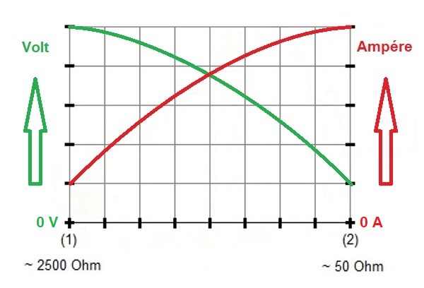 De waarden die in onderstaande uitleg worden genoemd, zijn gebaseerd op een zuivere 1/4 golf antenne met een voeding impedantie van 50 Ohm. Dit type antenne vaak toegepast vanwege zijn eenvoud en effectiviteit laat een karakteristiek verloop zien van weerstand, spanning en stroom over de lengte van de antenne, uitgedrukt in een fractie van de golflengte (λ). Hoewel er in de praktijk variaties bestaan bijvoorbeeld bij antennes met een voeding impedantie van 33 Ohm of 75 Ohm blijven de verhoudingen tussen stroom (Ampère), spanning (Volt) en weerstand (Ohm) ten opzichte van de golflengte over het algemeen gelijkvormig. Dat wil zeggen: ook al zijn de absolute waarden iets anders, het gedrag over de lengte van de antenne blijft herkenbaar en volgt hetzelfde patroon. Belangrijke kenmerken van het verloop bij een 1/4 golf antenne: Bij het voedingspunt (de basis van de antenne) is de impedantie laag (in dit geval 50 Ohm), en is de stroom maximaal. Dit is de plek waar de zender aangesloten wordt. Naarmate we verder omhoog gaan langs de lengte van de antenne (richting het uiteinde), neemt de impedantie geleidelijk toe, de stroom neemt af, en de spanning stijgt. Aan het uiteinde van de antenne (bij ¼ λ) is de stroom minimaal, maar de spanning is maximaal. Dit is typerend voor een open einde in een resonante kwartgolf antenne. Dit typische verloop is van groot belang bij het ontwerp van antennes en bij het afstemmen van matching netwerken. Door te begrijpen hoe stroom en spanning zich langs de antenne gedragen, kan men ook de antenne op een andere punt voeden met een aanpassingstrafo.