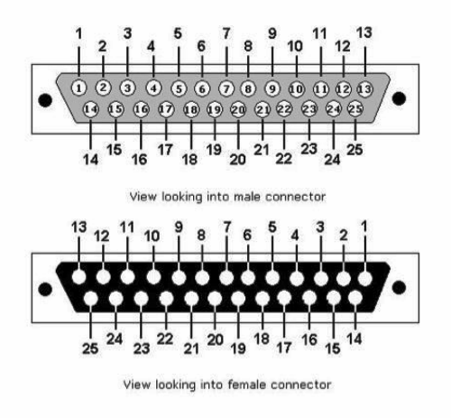 ist zwischen den Pins 9 und 25 angeschlossen. |